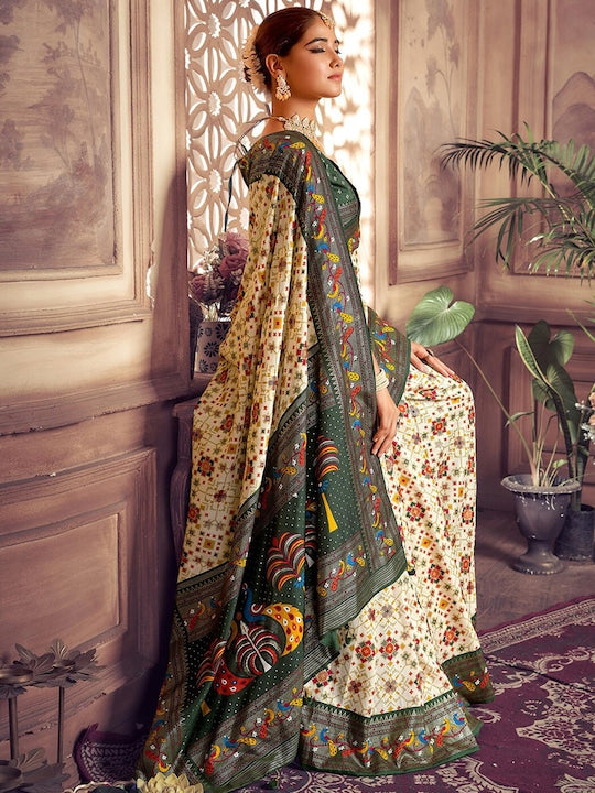 Satrani Printed & Tassels Silk Cotton Fusion Saree