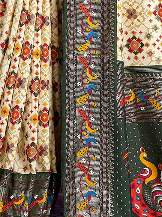 • Cream-coloured saree