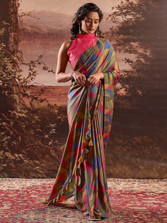 Satrani Printed & Tassels Silk Cotton Fusion Saree