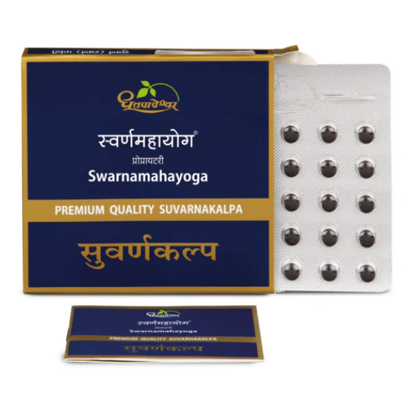 • Maha Swarna Yog is dispersible tablet which provides precise dose of 2mg standardized swarna bhasma in each swarna prashan administration.
