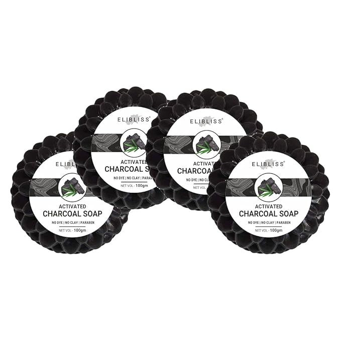 Elibliss Activated Charcoal Home Made Bath Soap - 100 gms (Pack of 4)