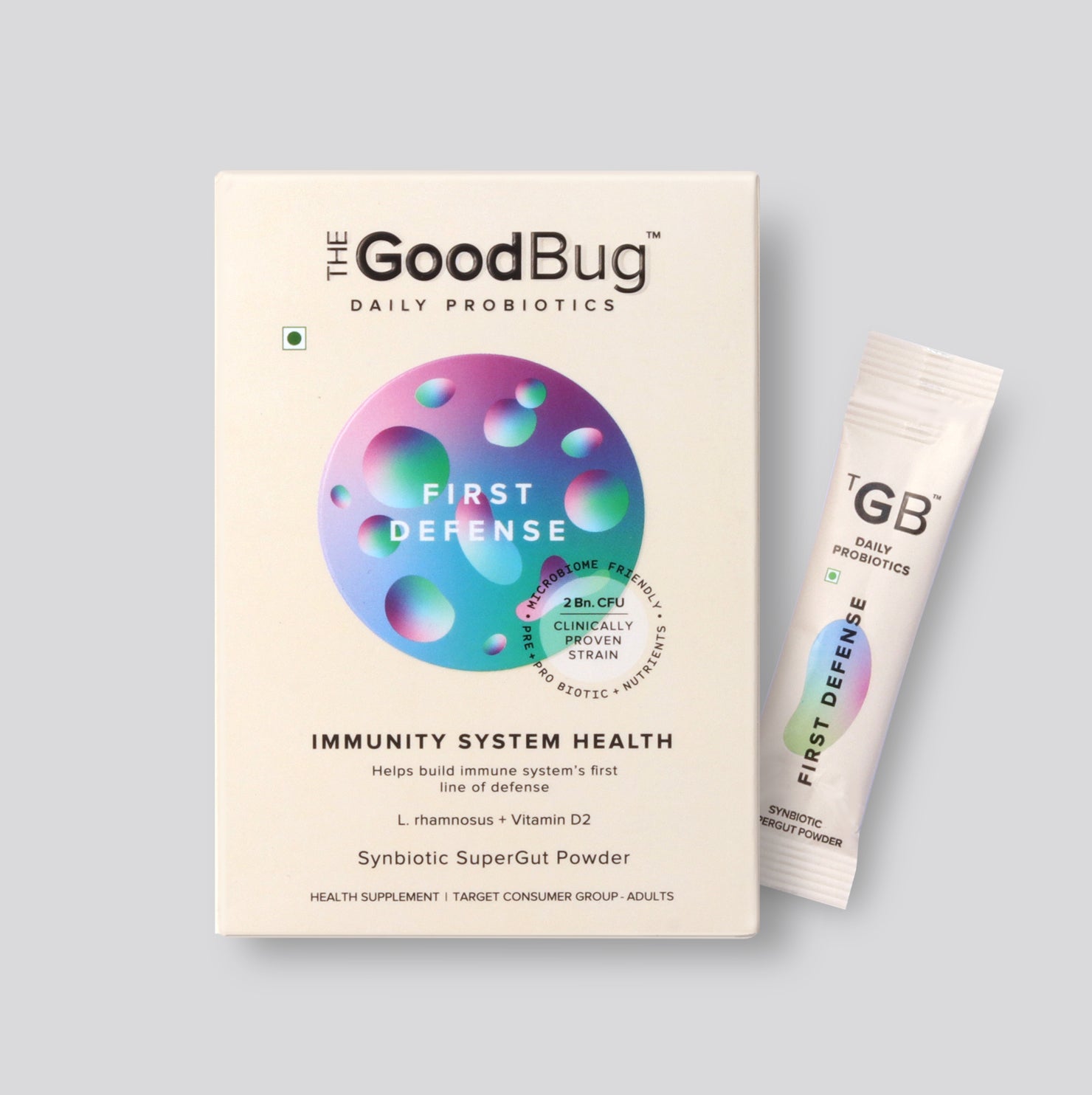 • The Good Bug First Defense SuperGut Powder is a probiotic dietary supplement designed to complement daily nutrition and wellness routines.