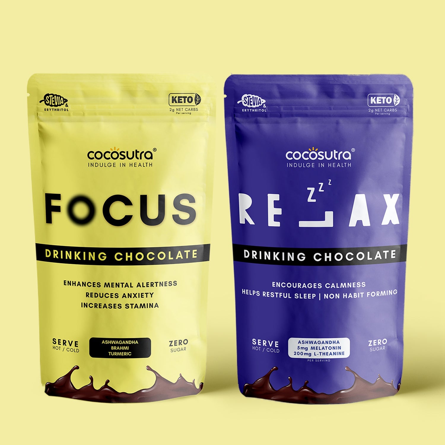 - Start your day with rejuvenating sugar free FOCUS drinking chocolate paired with refreshing ayurvedic functional ingredients to boost energy, beat anxiety & enhance concentration.