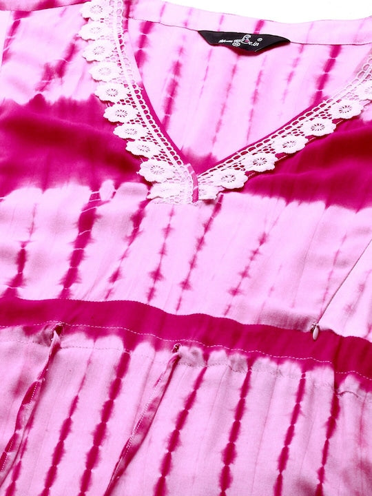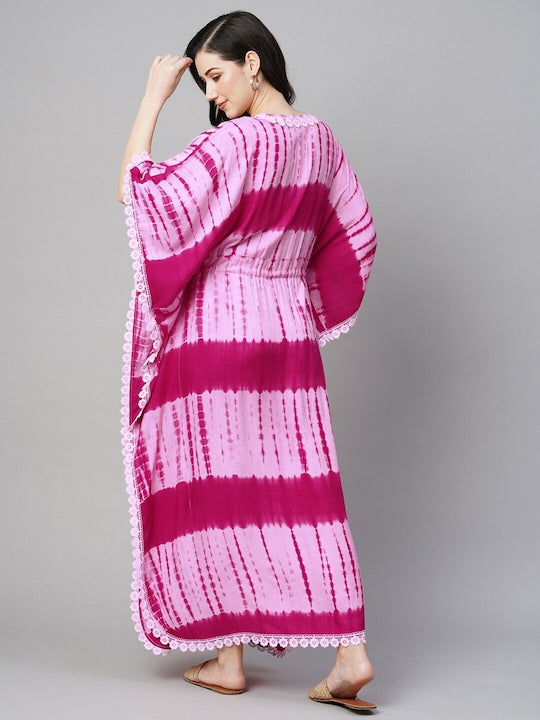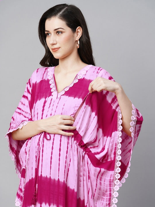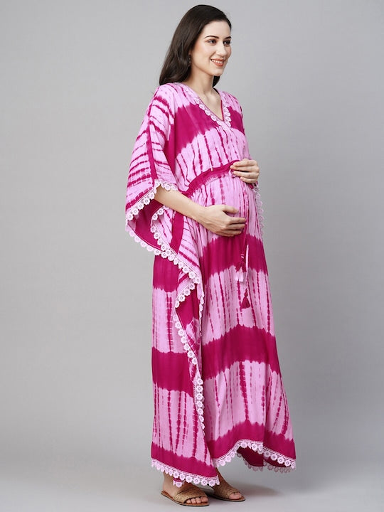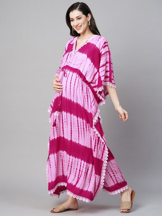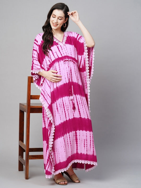 MomToBe Tie and Dye Printed Kimono Sleeves Maternity Kaftan Maxi Dress