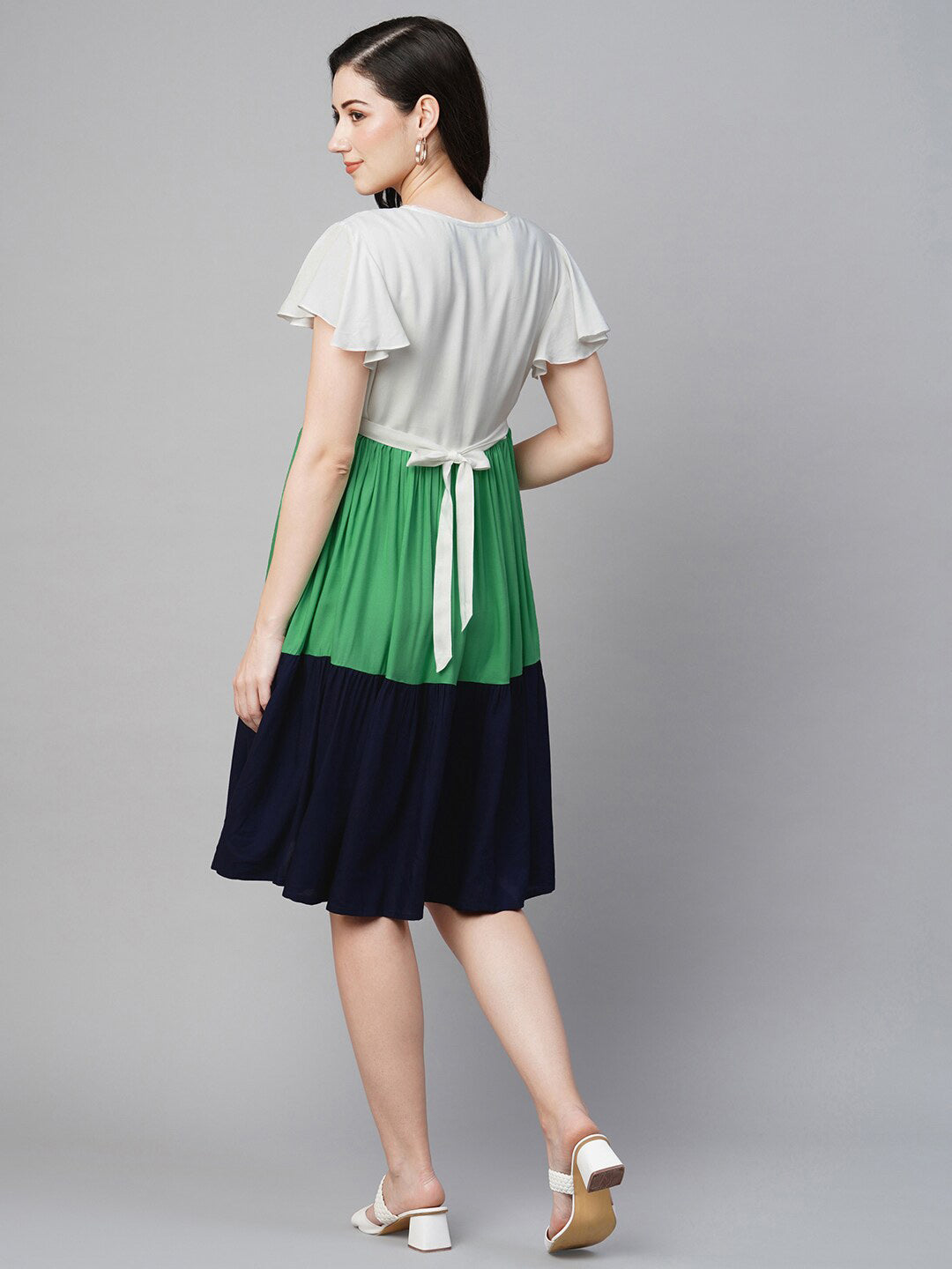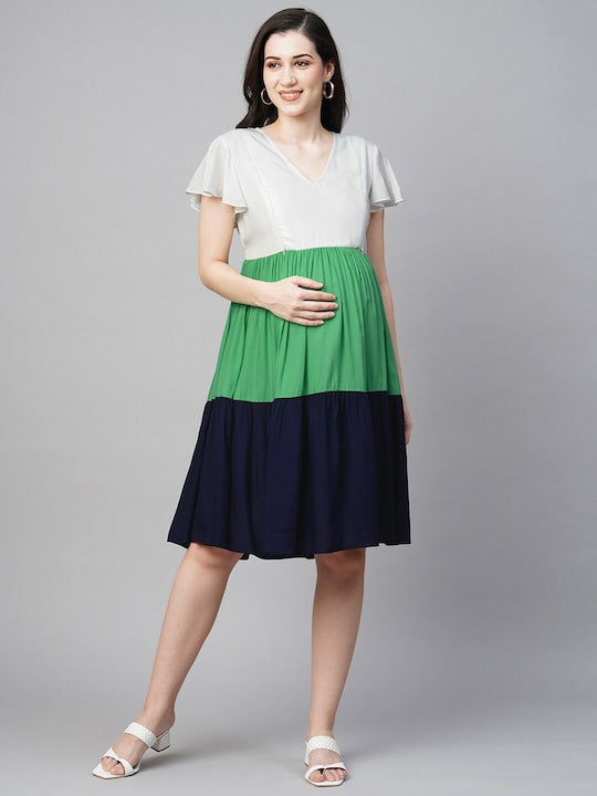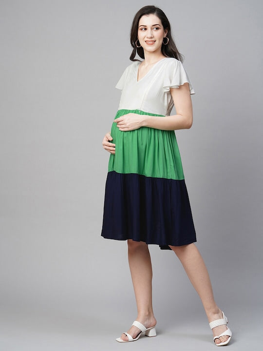 MomToBe V-Neck Colourblocked Maternity Fit & Flare Dress