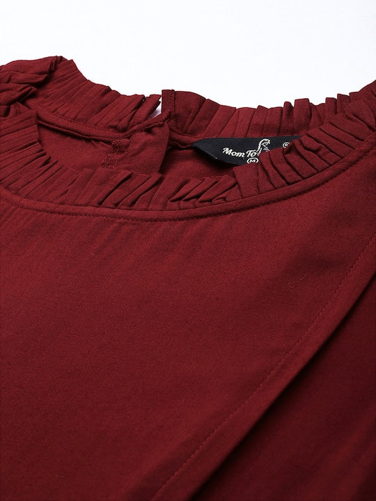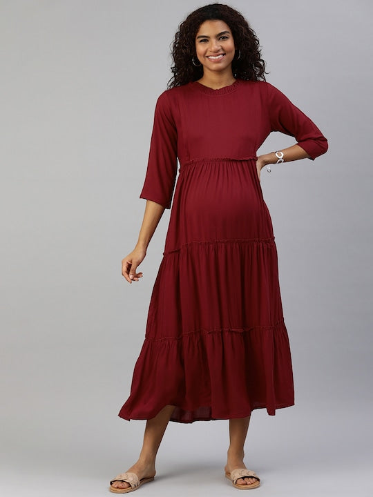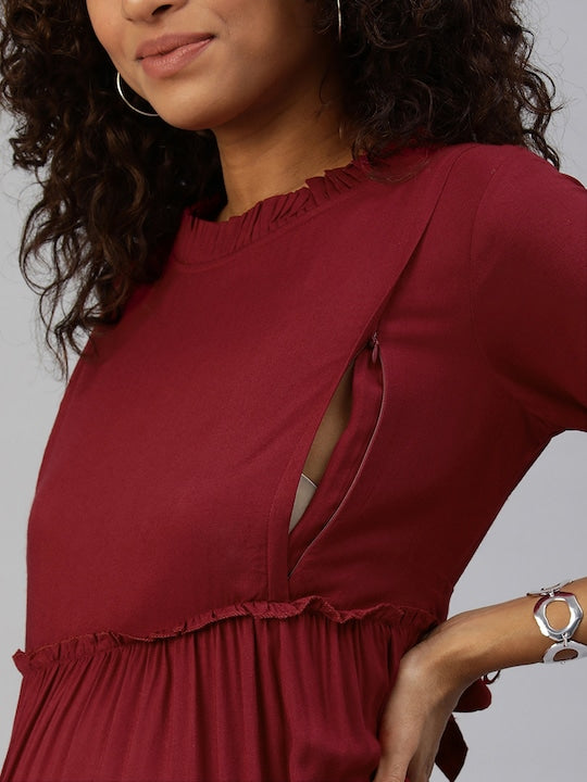 MomToBe Women Maroon Solid Maternity Nursing Maxi Dress