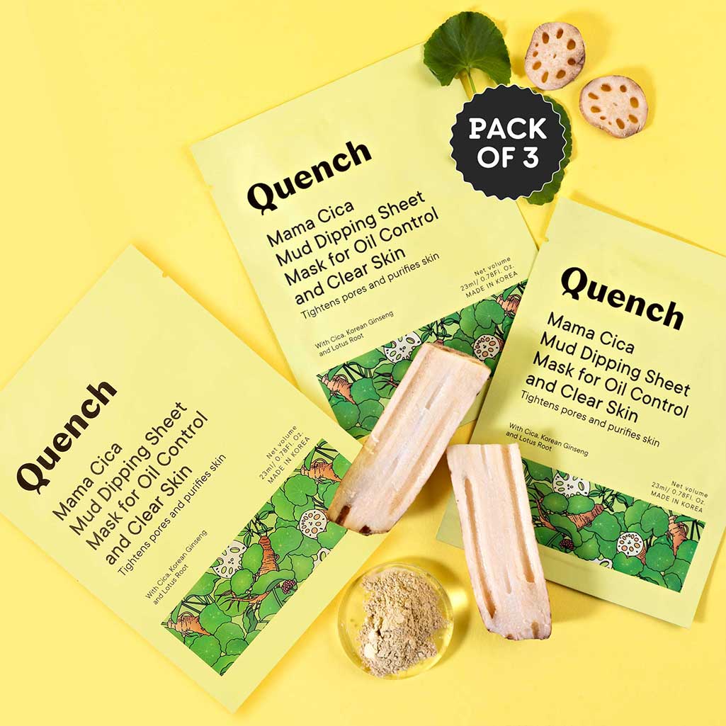 - A pack of 3 clay sheet masks! Quench brings to you a mess-free Kaolin clay sheet mask enriched with glycerine, cica, lotus root and Korean ginseng extracts.