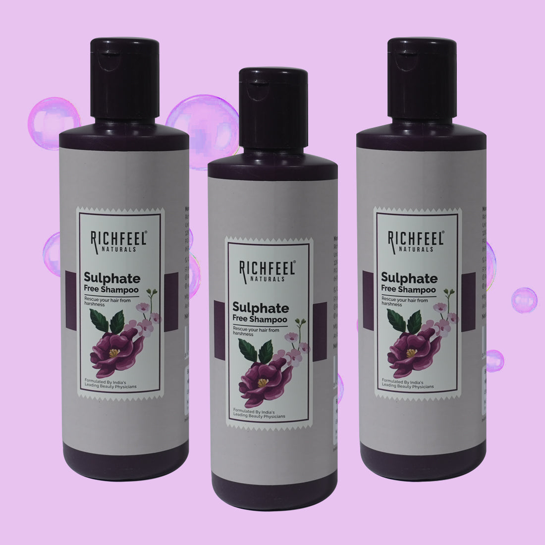 Richfeel Naturals Sulphate Free Shampoo - 220 ml (Pack of 3)