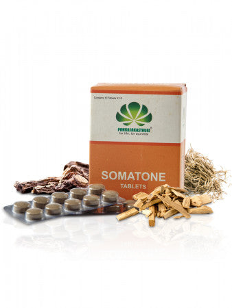 • Pankajakasthuri Somatone Tablets are crafted with a traditional blend of Ayurvedic botanicals such as Chandana,, Goksurah, Usirah, Padmaka, Khadira, Sariba, Haritaki, and other classical ingredients.