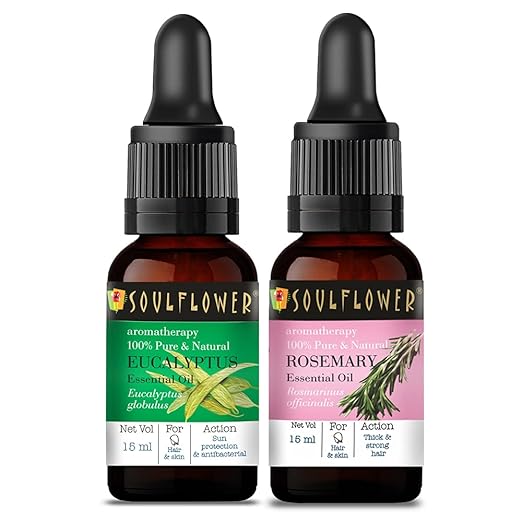 - Soulflower Essential Oil is a collection of ancient home recipes for your hair and skin. Rosemary & Eucalyptus essential oil for healthy hair and scalp and is also, it's suitable for all skin & hair types.