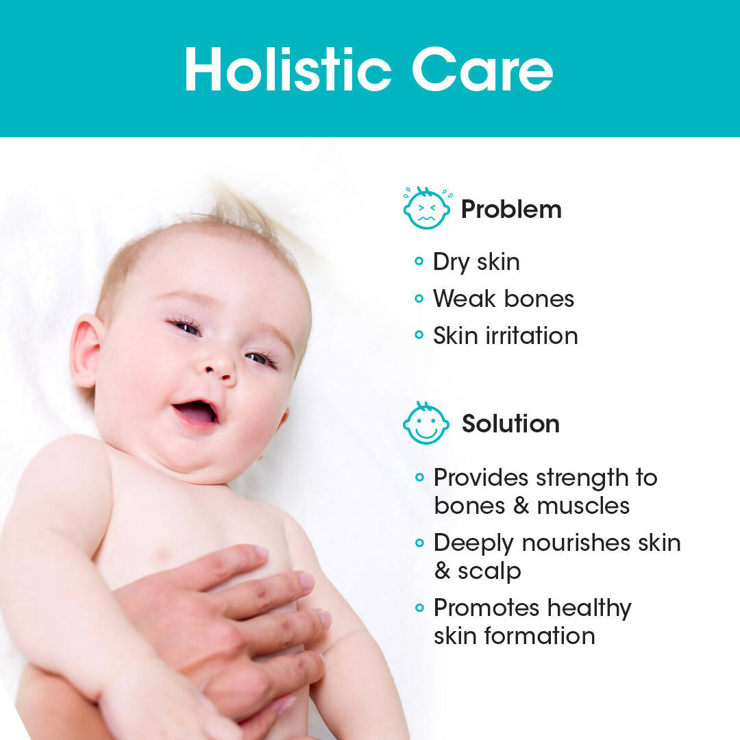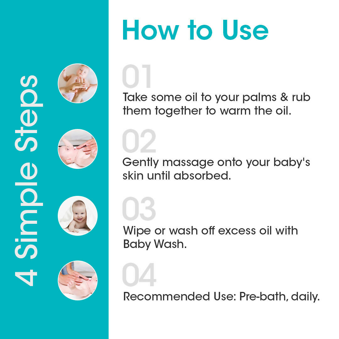 • It may nourish the skin and scalp and promote healthy skin. This baby oil is free from allergens and mineral oil.
