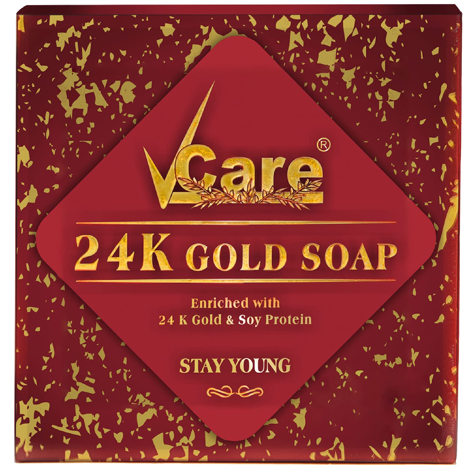 • 24K GOLD SOAP: VCare 24K Gold Soap is the best anti-aging soap for bath that rejuvenates your skin cells and reduces wrinkles. It keeps your skin young and radiant.