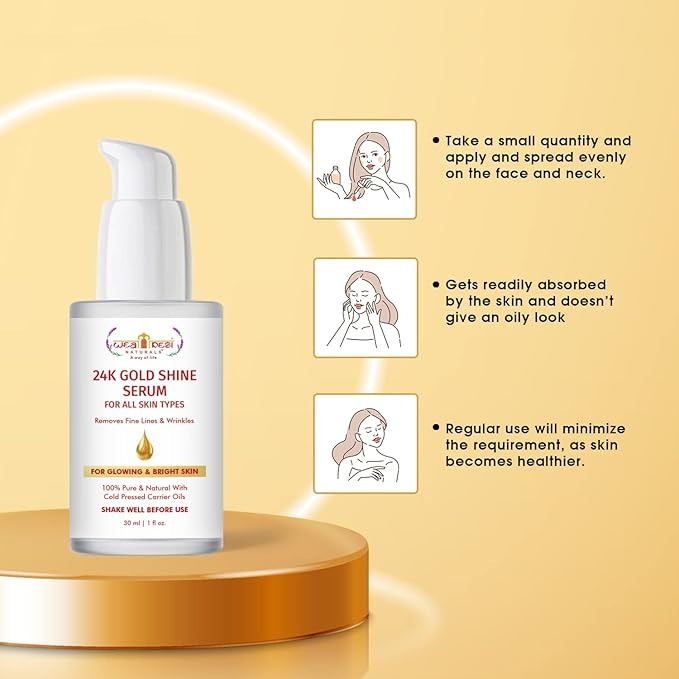 - Weadesi 24k gold sreum for glowing skin anti aging, serum for face glowing and whitening, serum for acne and dark spot can be Used: Take a small quantity. Apply and spread evenly as a thin layer on the face and neck area. It gets readily absorbed by the skin and does not make you look oily. Use as often as needed, based on the skin type and weather.