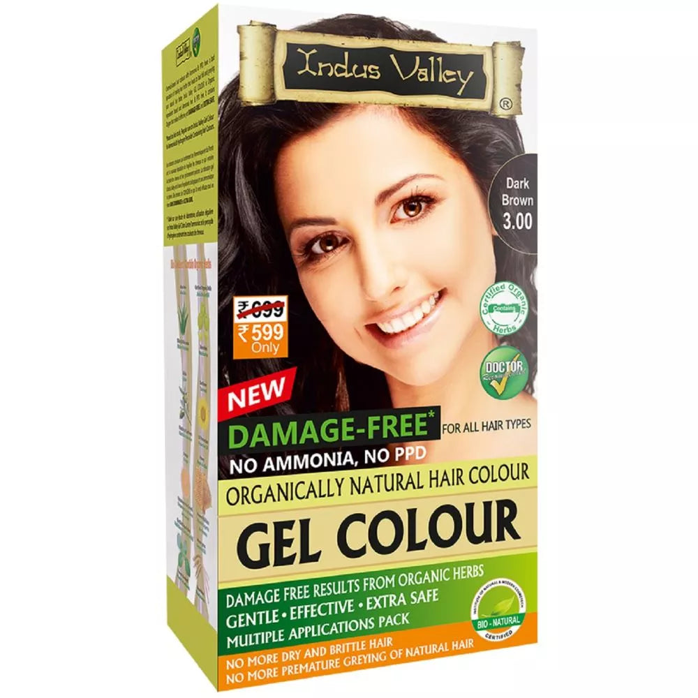 Indus Valley Organically Natural Gel Dark Brown 3.00 Permanent Hair Color - 220 gms