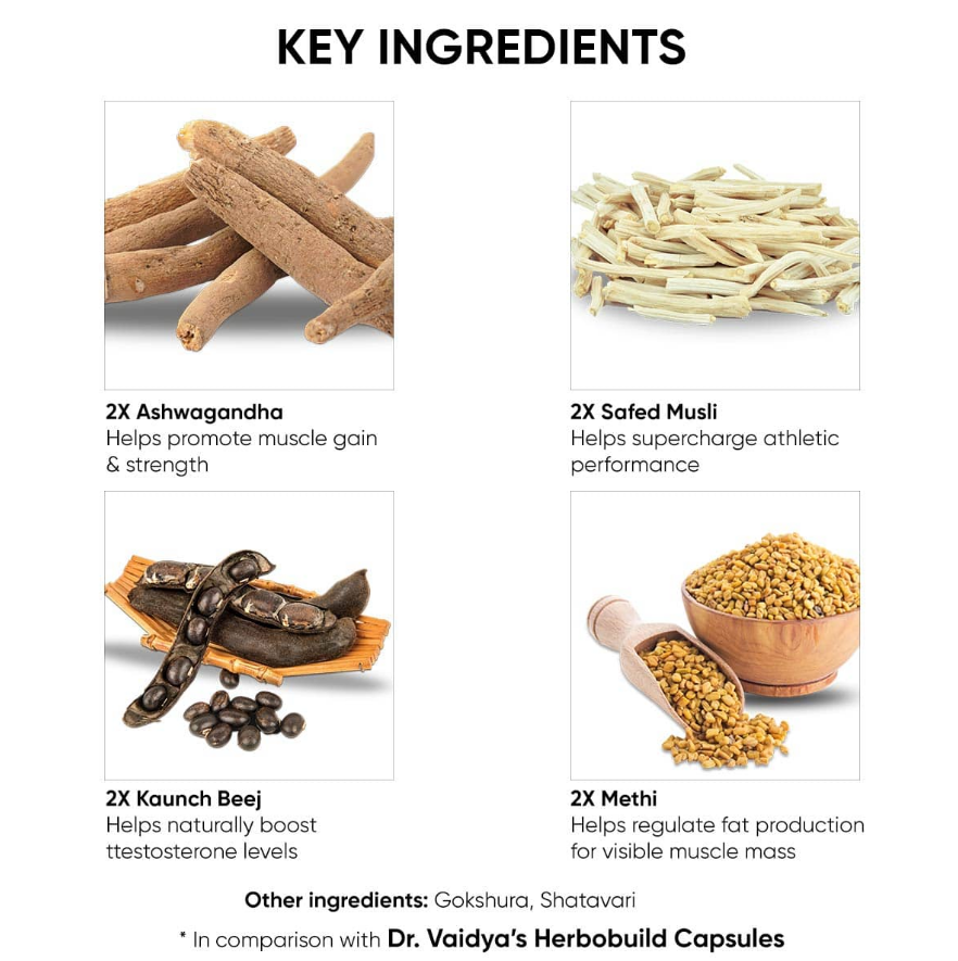 • It contains double the concentration of herbs like Ashwagandha and Safed Musli, which may support muscle growth and protein synthesis.