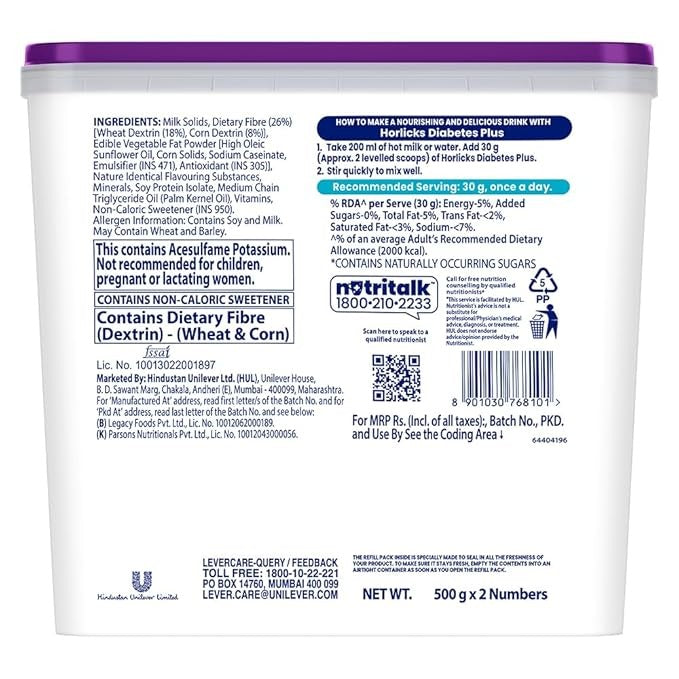 Horlicks Diabetes Plus Vanilla Container - 1000 gms