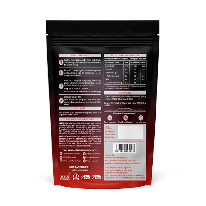 - Direction to Use: Add one Scoop of Nakpro Creatine monohydrate to 200ml of water/milk. Ideal for Post-workout Protein drink