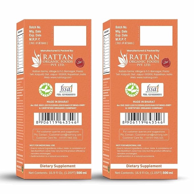 • Nutriorg Sea Buckthorn Juice is made from handpicked Himalayan berries, known for their rich nutritional profile.