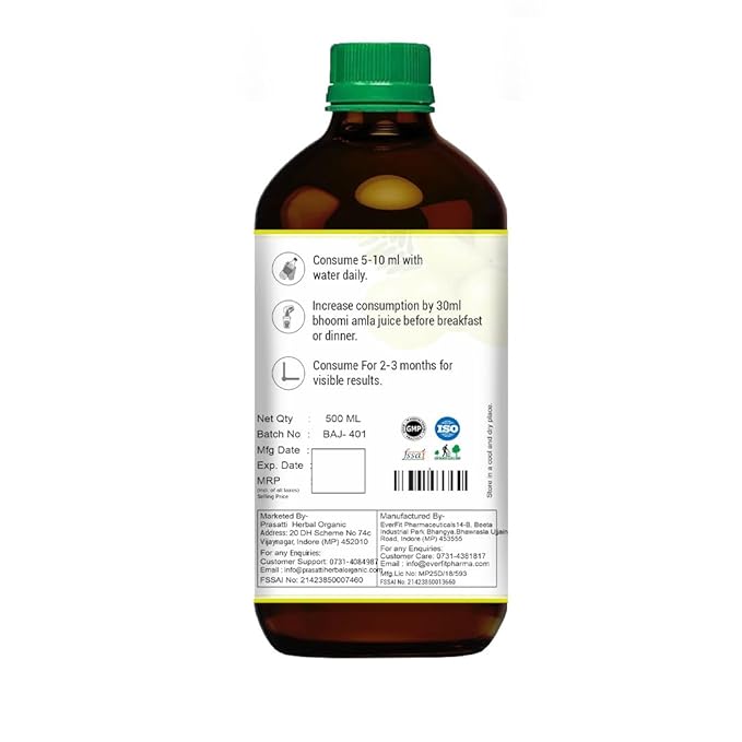 Prasatti Herbal Organic Bhumi Amla Juice - 500 Ml | Natural Liver Detoxifier