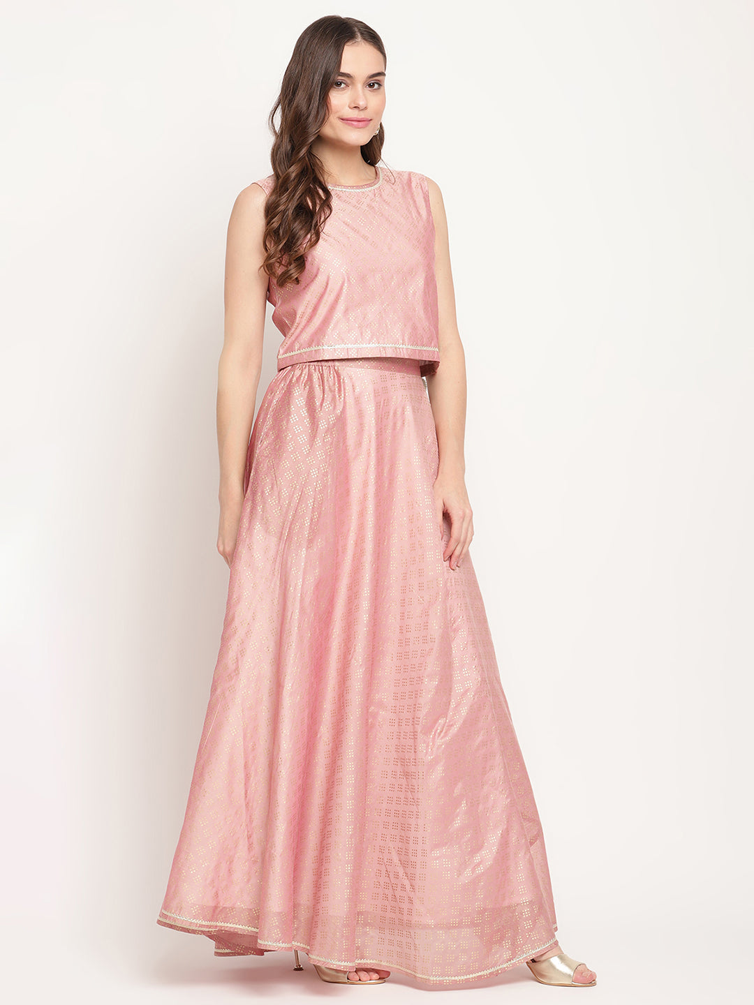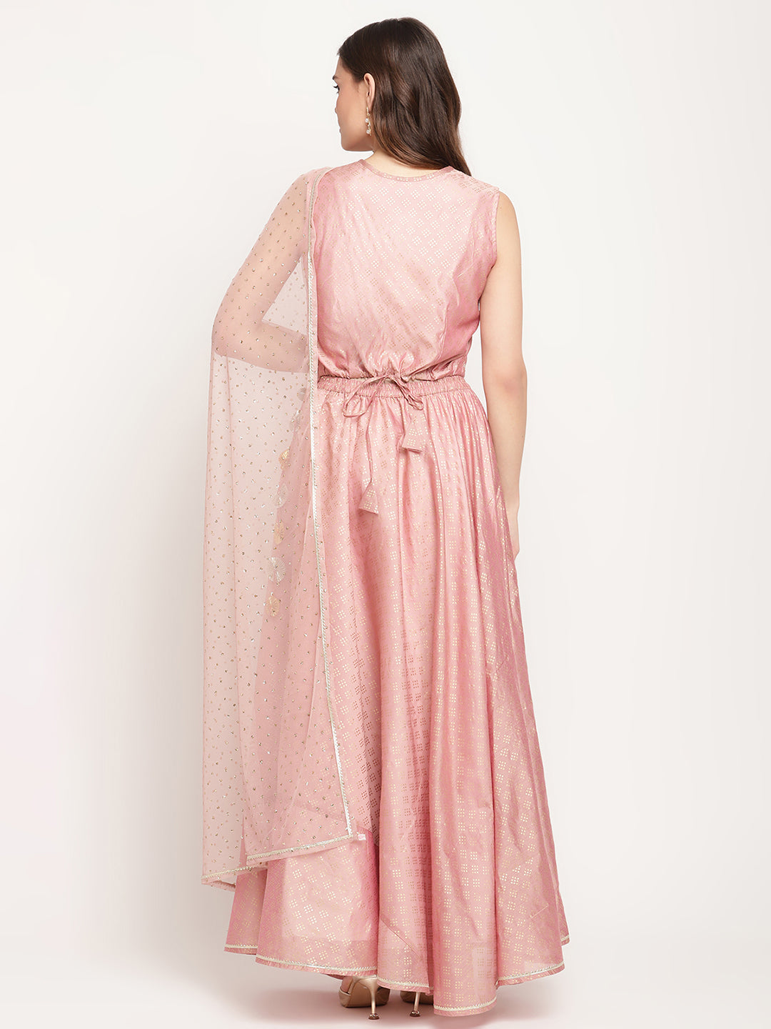 Ahalyaa Women Rusty Rose Chanderi Gold Foil Print Lehenga Choli With Dupatta