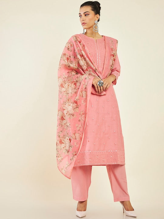 Anubhutee Women Mauve Floral Printed Pure Cotton Kurta with Sharara & With Dupatta