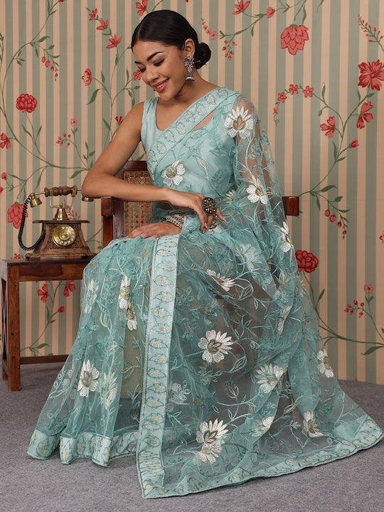 - Embellished embroidered saree with embroidered border