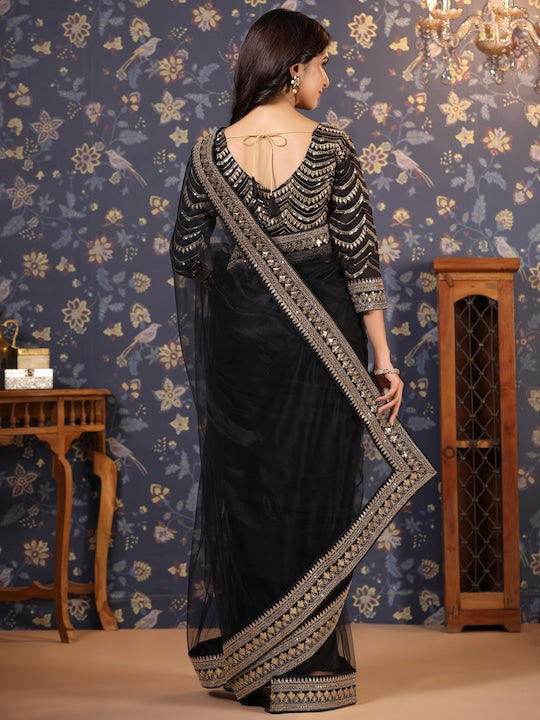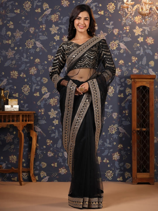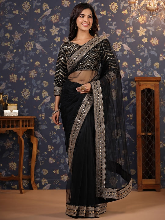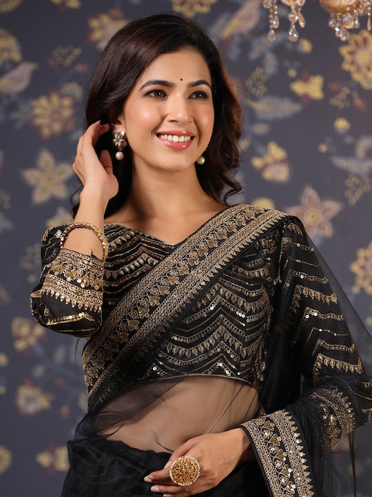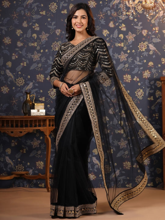 - The blouse worn by the model could be for modelling purpose only, please check the image of the actual blouse piece.The saree comes with an unstitched blouse piece