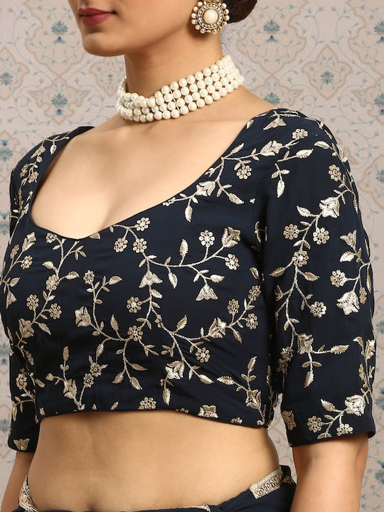 - The blouse worn by the model might be for modelling purpose only. Check the image of the blouse piece to understand how the actual blouse piece looks like.