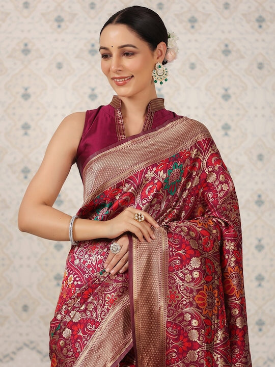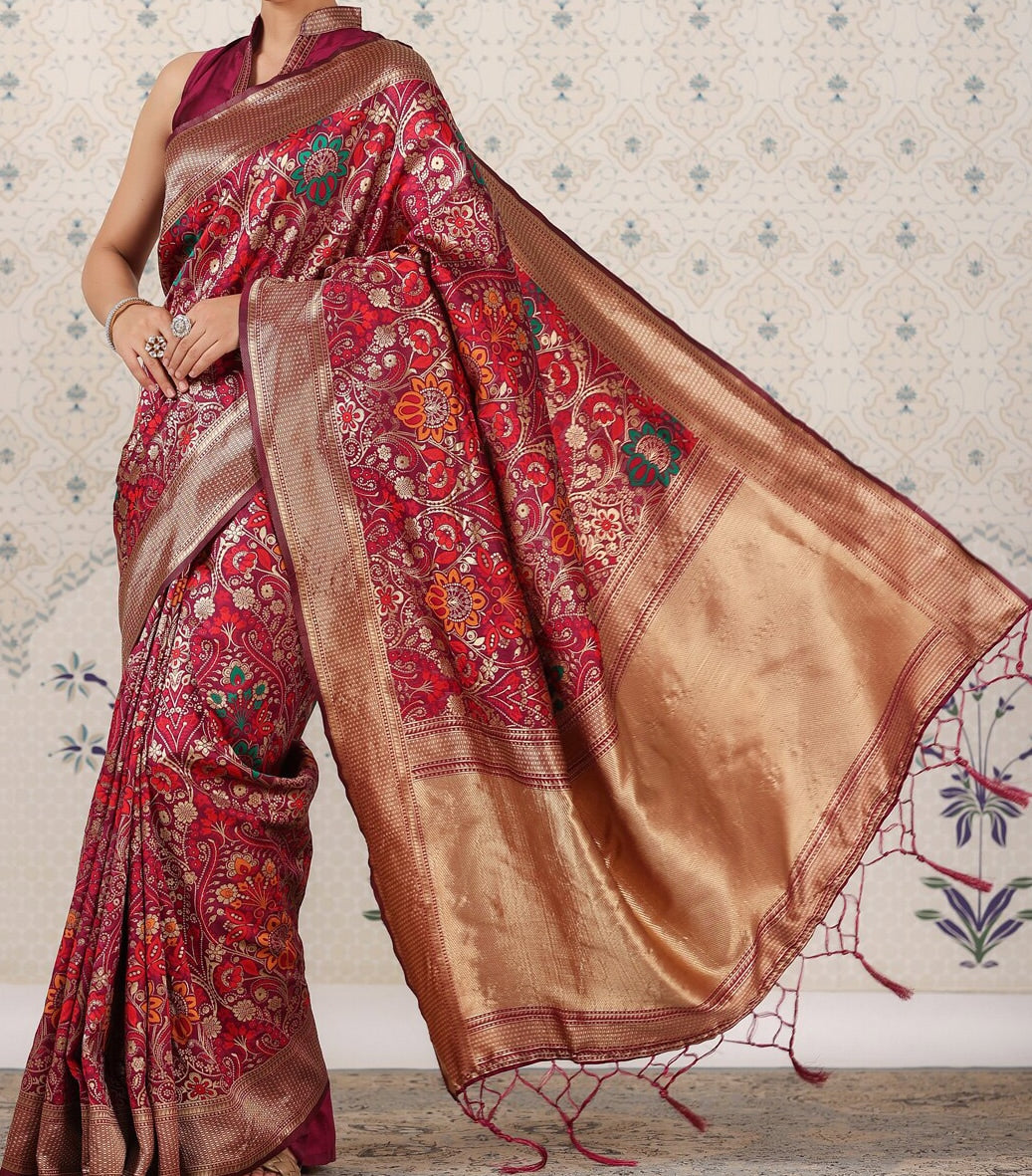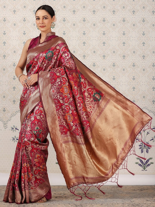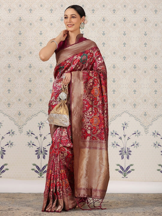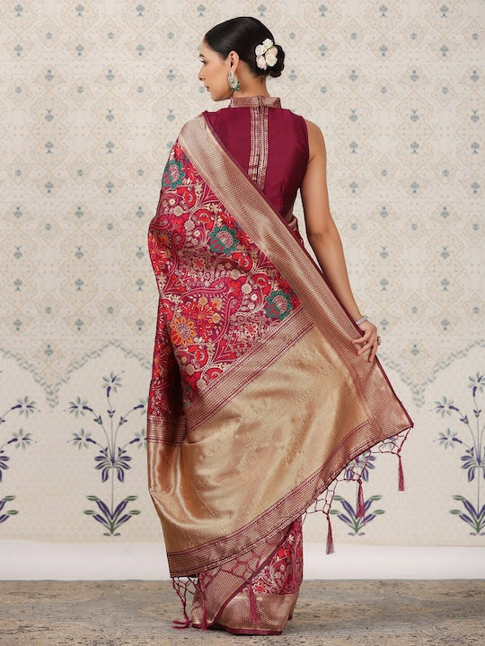 House of Pataudi Ethnic Motifs Zari Pure Silk Banarasi Saree