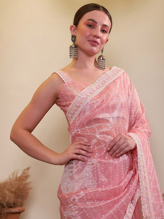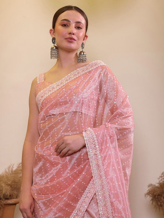 House of Pataudi Ethnic Sequence Embroidered Saree