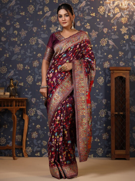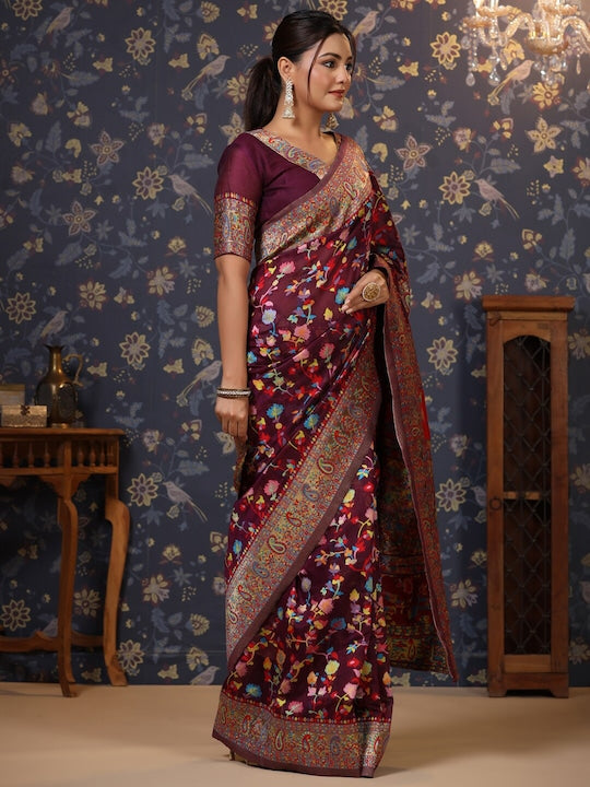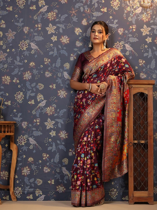 House of Pataudi Floral Woven Design Zari Banarasi Saree