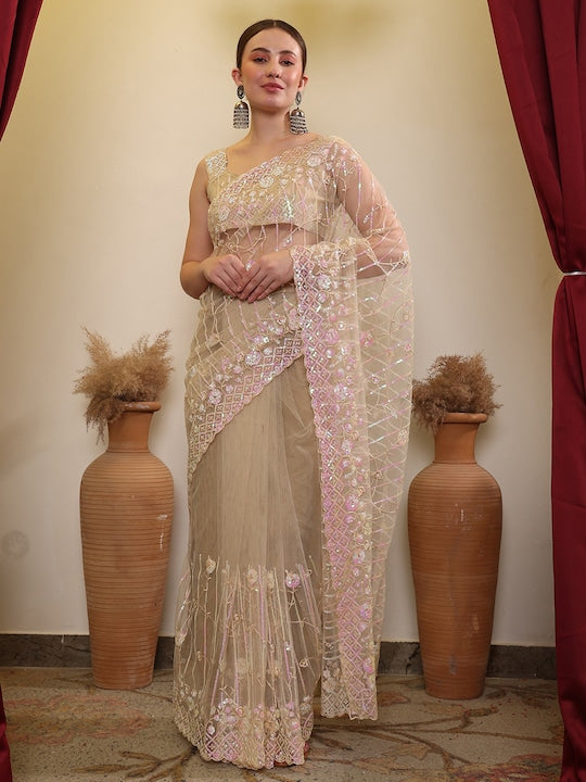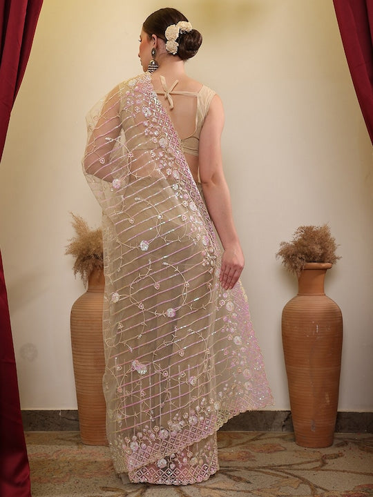 House of Pataudi Sequence Embroidered Saree With Blouse