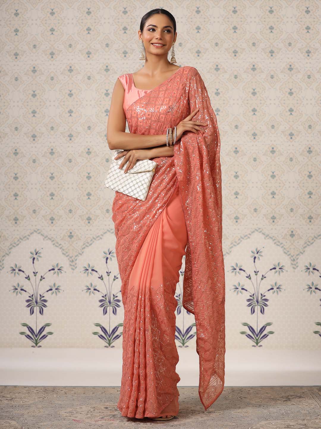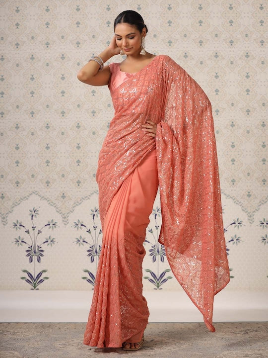 House of Pataudi Sequinned Embellished Poly Georgette Saree