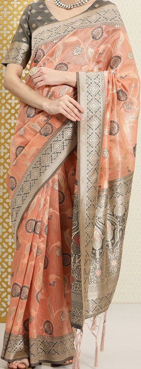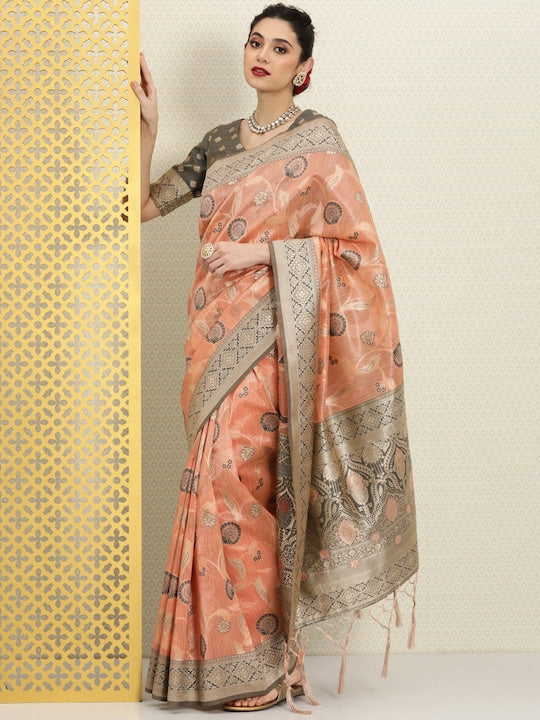 House of Pataudi Woven Design Ethnic Motifs Zari Silk Blend Saree