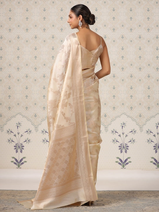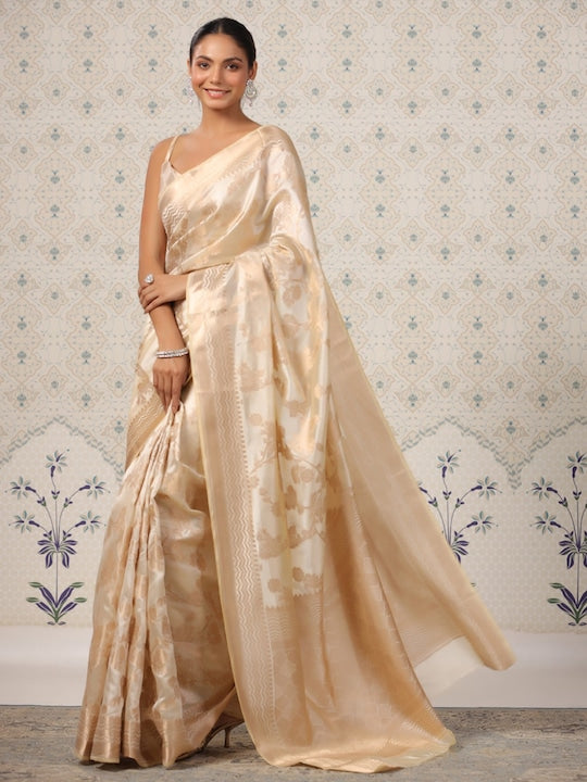 - Beige and gold-toned banarasi saree