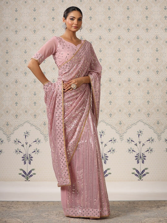 Ode by House of Pataudi Mauve Embellished Sequinned Saree