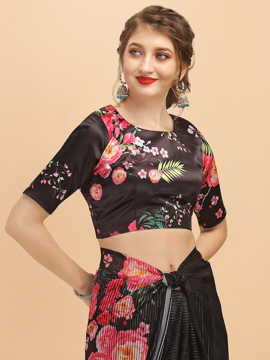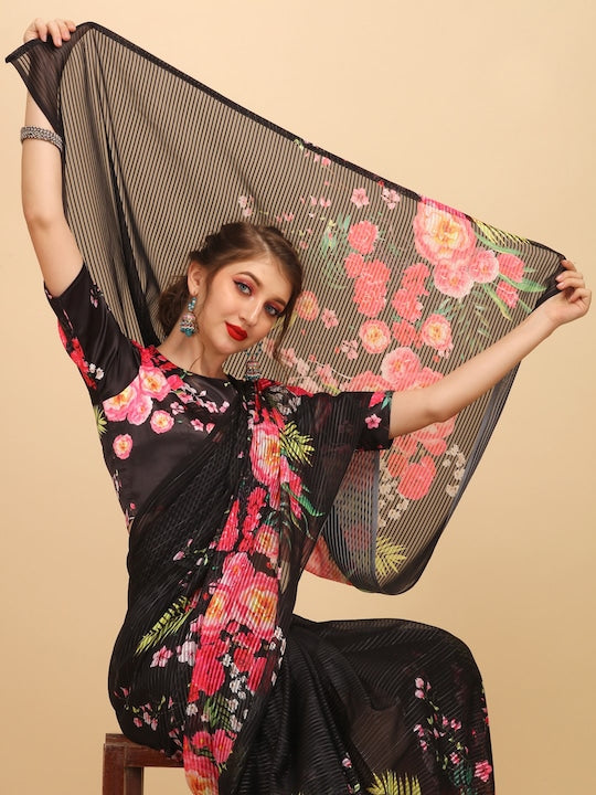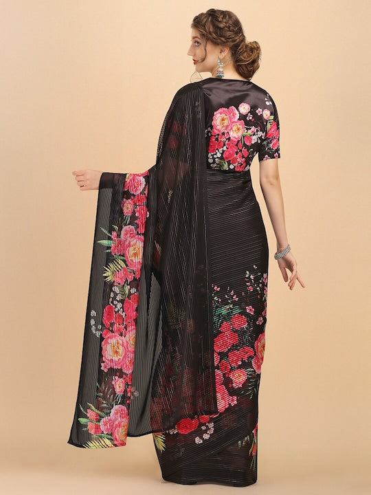 Sangria Black Floral Sequinned Satin Saree