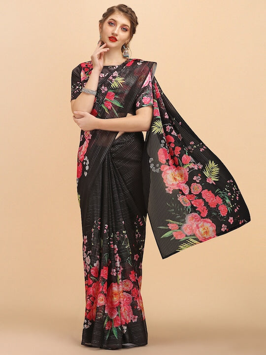 • Floral printed saree with no border