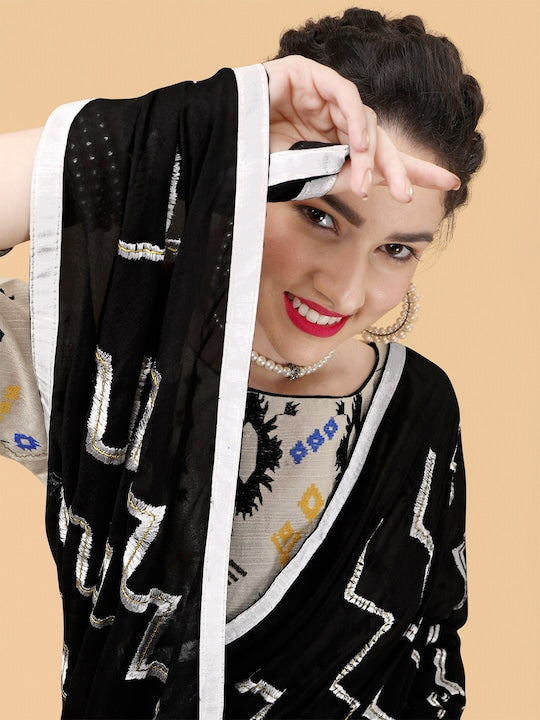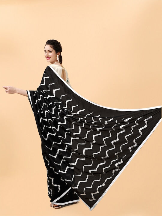 Sangria Black & Gold-Toned Leheriya Embroidered Saree
