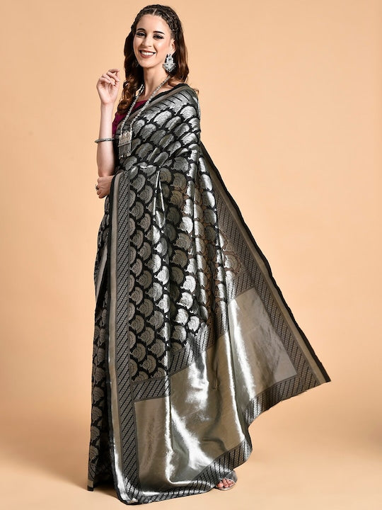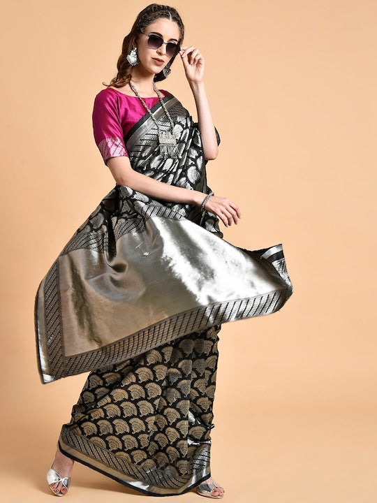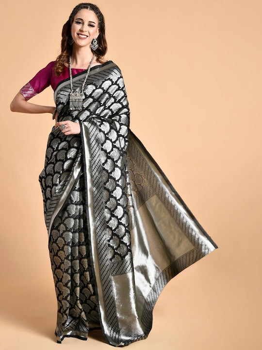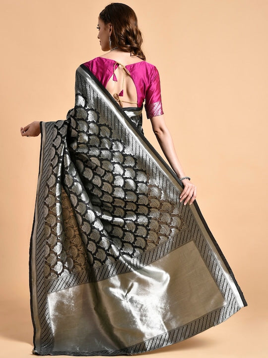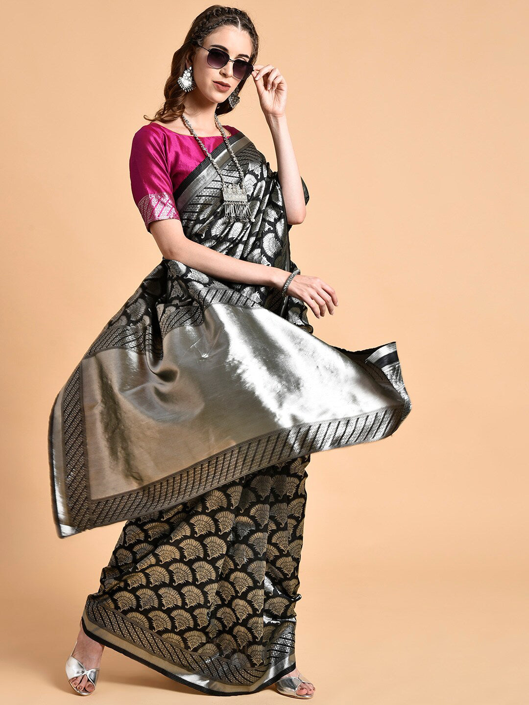 - Sangria Silk Blend Multi Colored Jaquard Heavy Work Zari