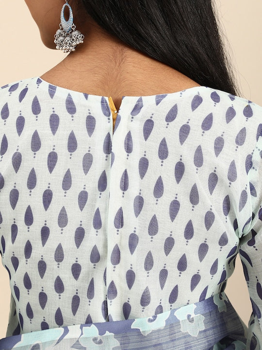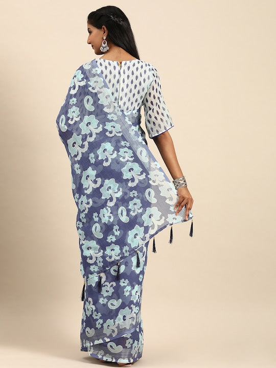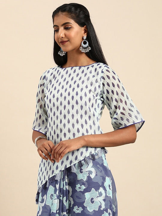 • Update your wardrobe staples with this exquisite festive saree from Sangria. This blue design can be styled with a pair of patent pumps when you're going to a fancy dinner with your friends.
