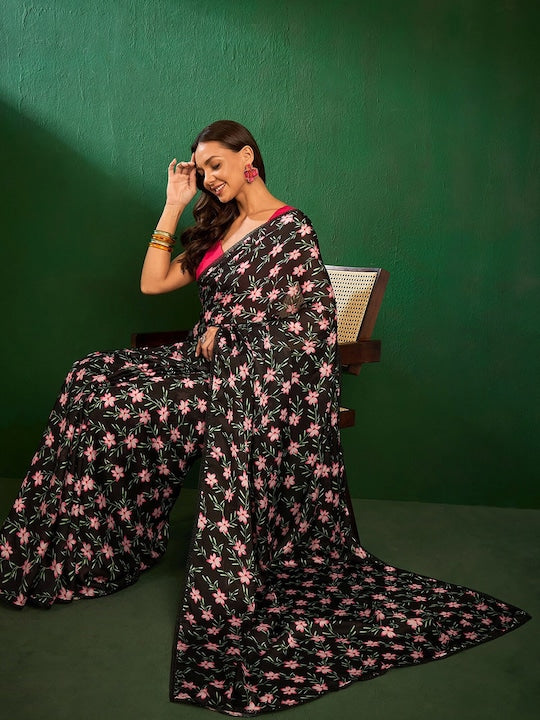 - Black and pink saree