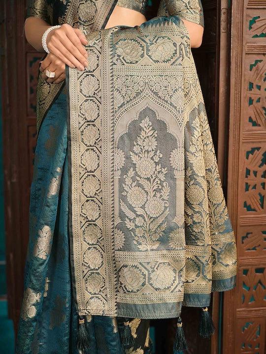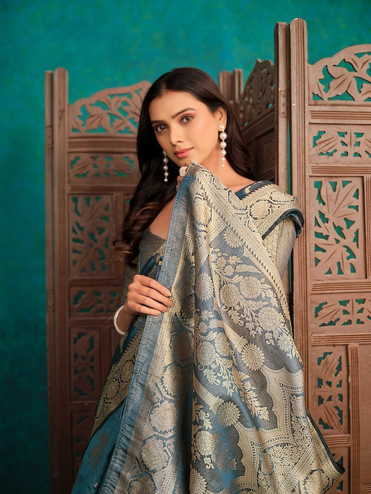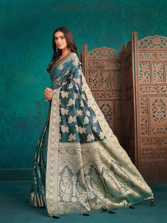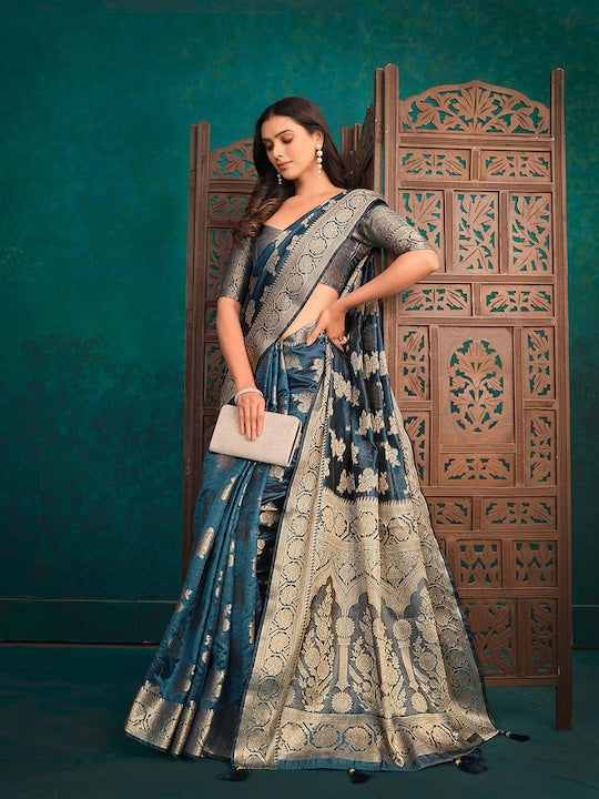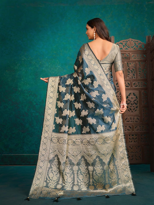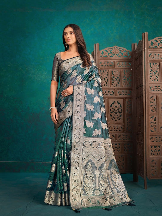 The blouse worn by the model might be for modelling purpose only. Check the image of the blouse piece to understand how the actual blouse piece looks like.
