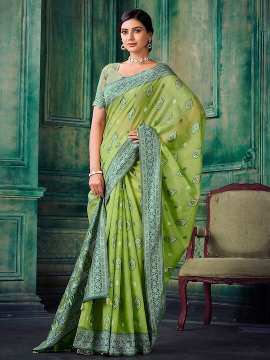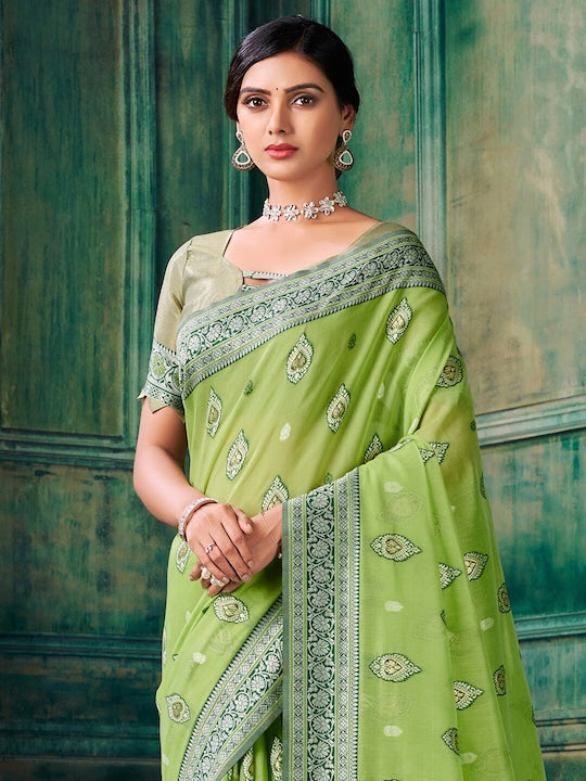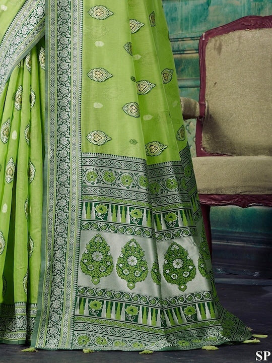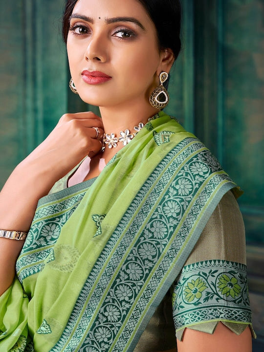 Sangria Green Ethnic Motifs Woven Design Zari Banarasi Saree