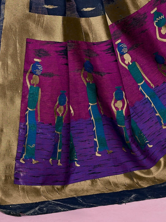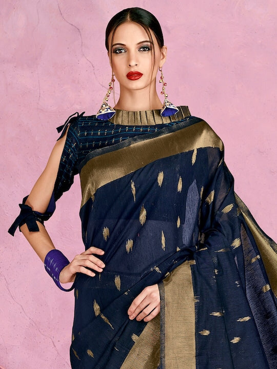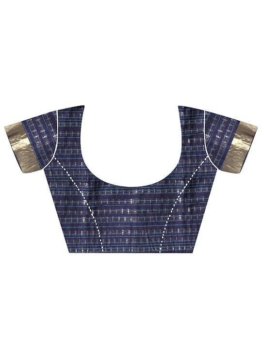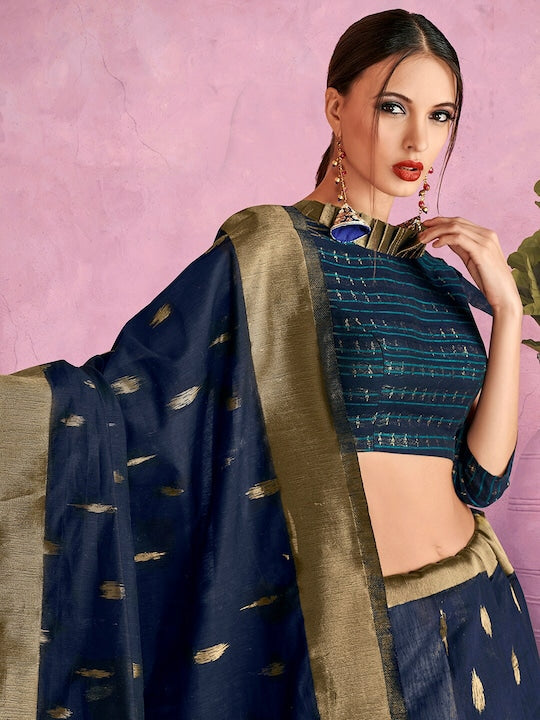 Sangria Navy Blue Ethnic Woven-Designed Festive Saree With Blouse Piece