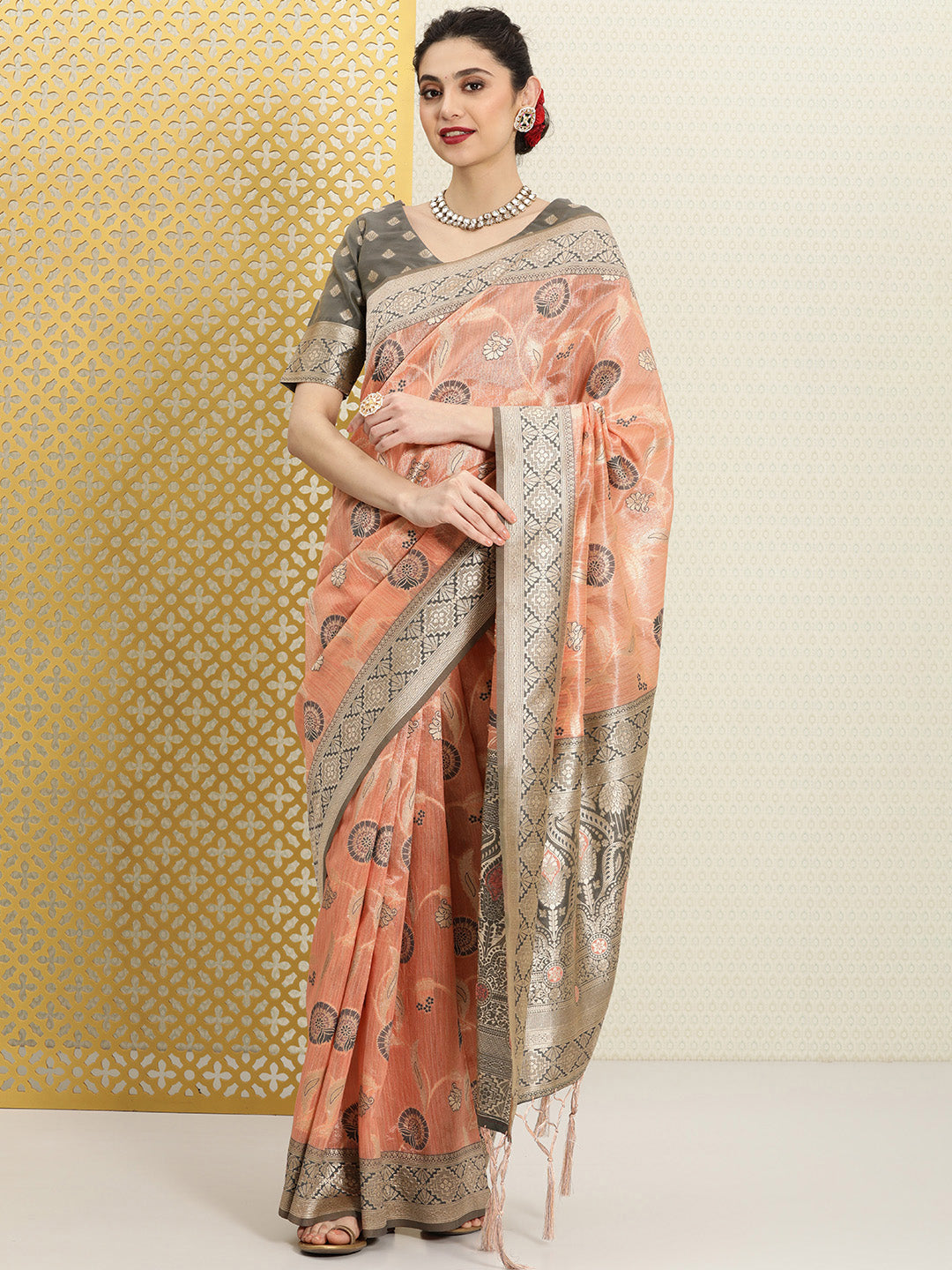 House of Pataudi Floral Printed Zari Banarasi Saree