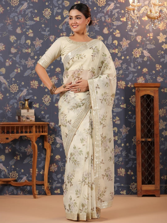 House of Pataudi Sequence Ethnic Embroidered Saree