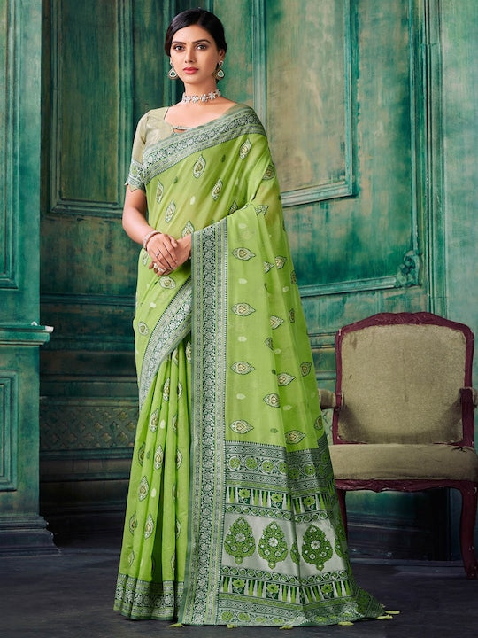Sangria Green Ethnic Motifs Woven Design Zari Banarasi Saree
