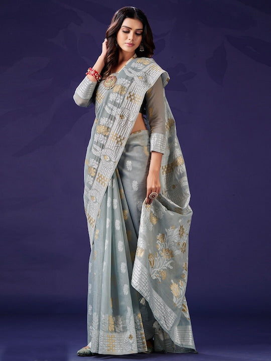 Sangria Sea Green Ethnic Woven-Designed Festive Saree With Blouse Piece