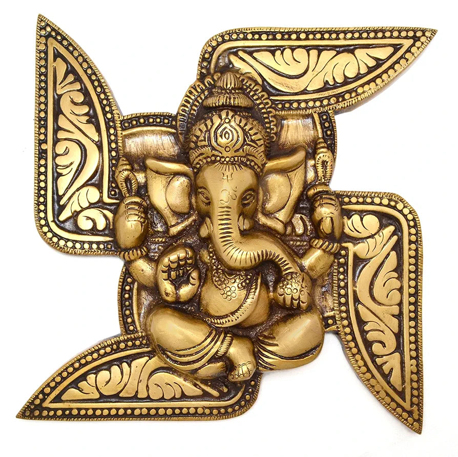 - Divine Décor: Add a touch of spirituality and elegance to your living space with our Brass Ganesha Swastika Wall Hanging. This intricately crafted piece serves as a symbol of positivity and prosperity.